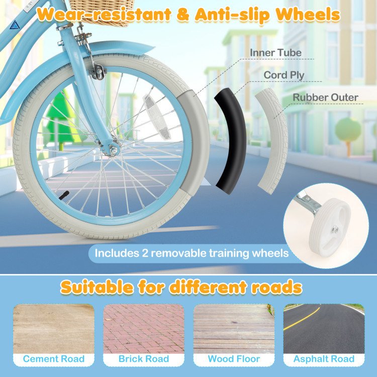 1.Retro and Eye-Catching Appearance: With bright colors, fun bell and unique patterns, the kid's bike is sure to appeal to your sweetie, encouraging them to go for a bike ride. Besides, there is a front basket for kids to store their "treasures", such as flowers, leaves, dolls or snacks. If needed, you are allowed to remove the basket.