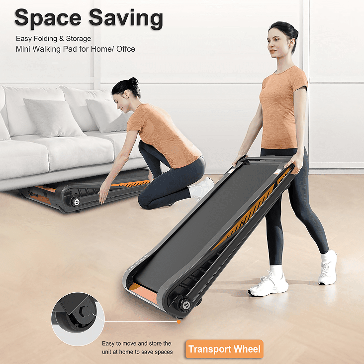 Easy to Move - With 2 transport wheels installed on the desk treadmill, it is easy to be moved and placed under sofa, table or bed for small space saving.