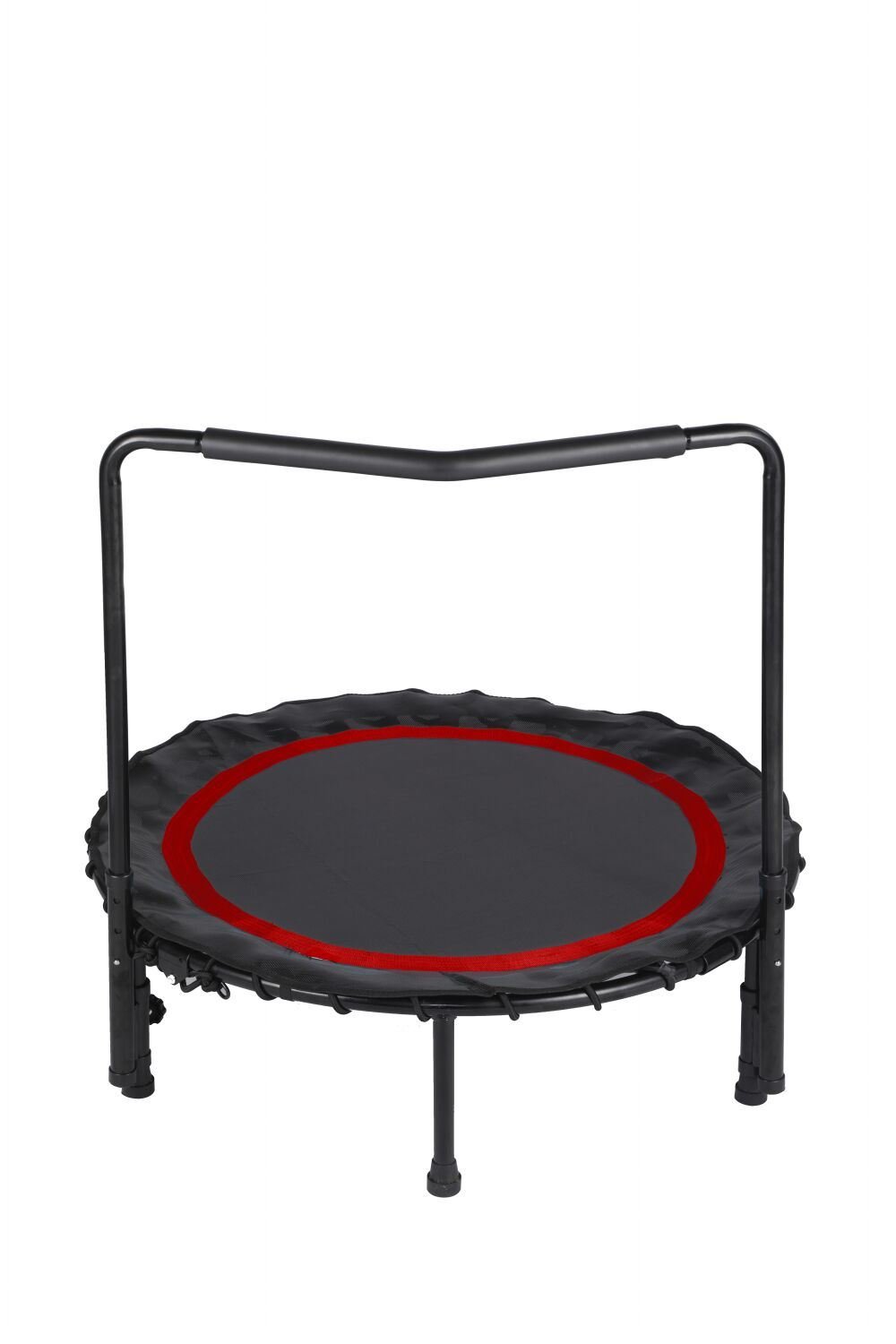 1.Fitness Trampoline with Adjustable Handle: 3 height adjustment handles. They are 35.4-37-38.6inch. Can be adjusted for all ages and height requirements. Handrail improves balance, flexibility and coordination.