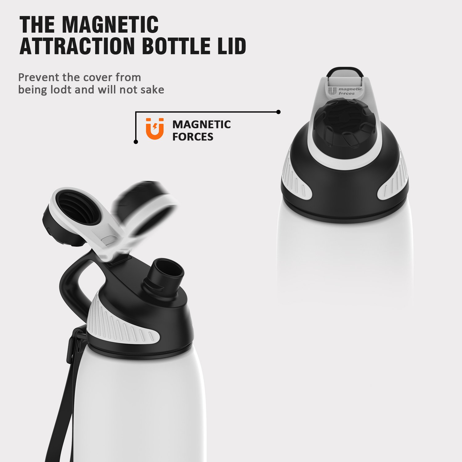 2.Smart Design of the lids - Ergonomic design of the lids makes it flow smoothly. Magnetic force lids will not fall back when drinking water.