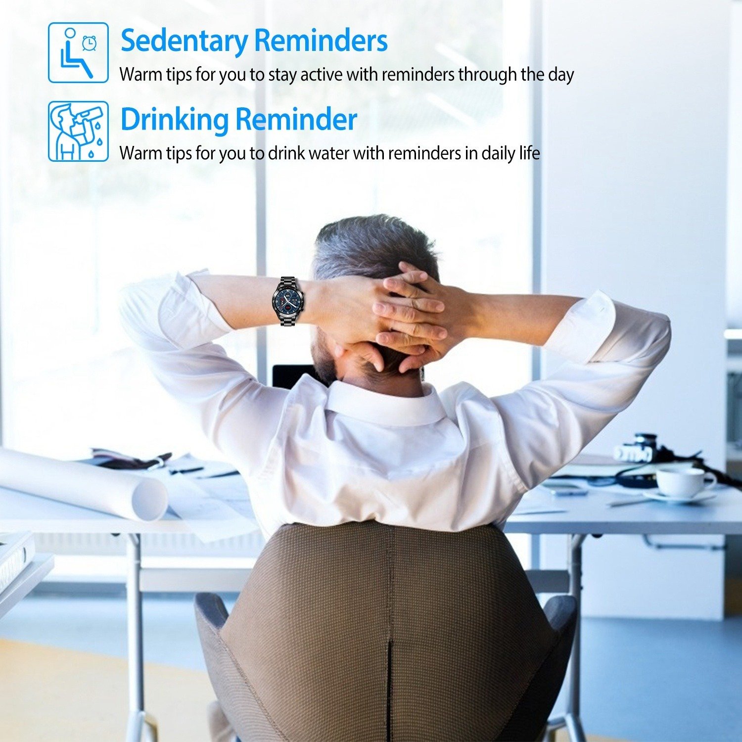 *More Practical Functions*:Our smart watch also comes with many practical functions; such as stopwatch; sedentary reminder; drinking reminder; 12/24 hours adjustable; music play/pause/previous/next song; camera control; find phone; charging reminder; upgrading reminder; calling reminder; alarm clock; etc.. Besides; you can change the dial wallpaper to your individual pictures; just select your image from your phone!