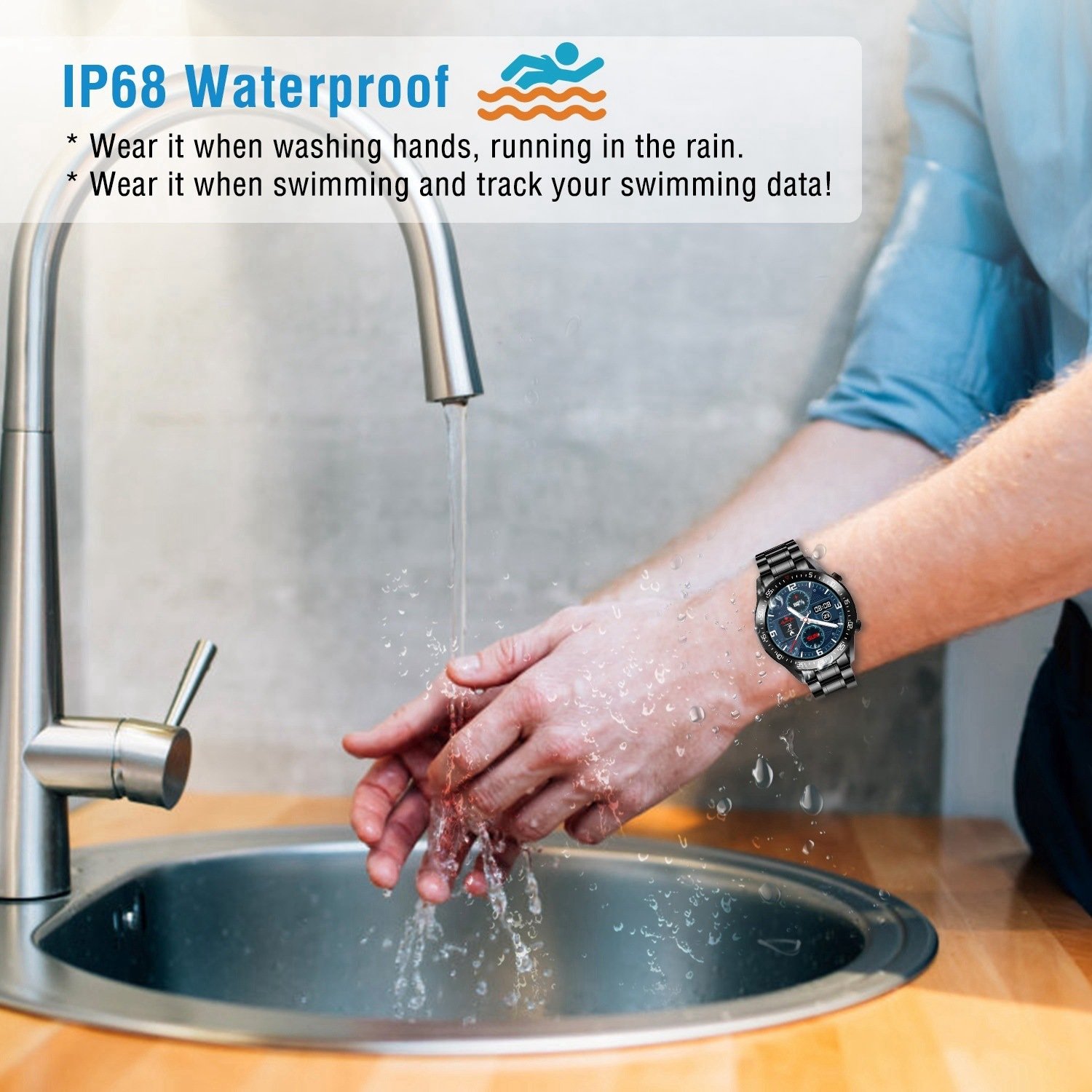 *IP68 Waterproof Fitness Watch*:IP68 waterproof rating; which can be used for daily life waterproof; such as wear it when washing hands; running in the rain. You can also wear it when swimming and adjust it to swimming mode to track your swimming data. So convenient!