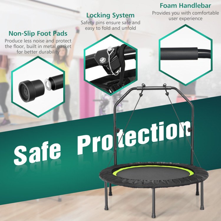 1.40" Folding Workout Trampoline: This trampoline has a diameter of 40" and can provide a large enough range of play and leisure places for children and parents. Besides, the foldable design and compact size make it easy to store or carry. There is no doubt that this will be an excellent gift.