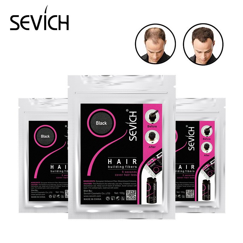 Sevich hair growth fiber is a hair modification product. In principle, it uses the electrostatic effect of hair to absorb fine powdery hair growth fiber around the hair,using electrostatic attraction and same-sex repulsion. Advanced technology can be used to instantly restore hair's strength.It is like a real natural perfection. It will make you look and feel better than ever before. It will always be confident and full of good life from the beginning. After use, the color is more uniform,the absorption is more firm, and the appearance of the hair becomes thicker. After use, it can be combed into the hairstyle that you need, and it can also be used to make the shape stronger with the shaping water.