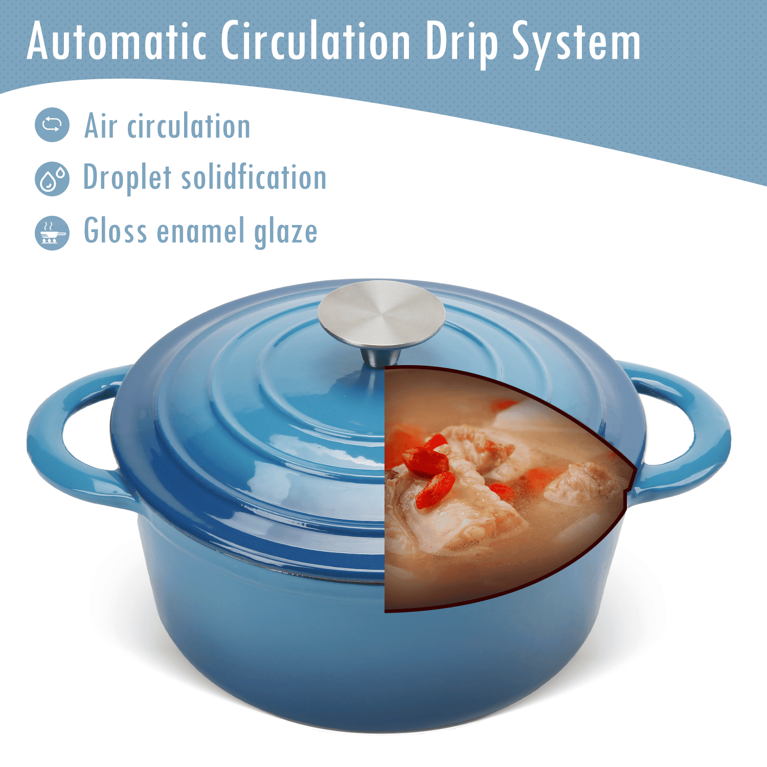 COOKWIN Enameled Cast Iron Dutch Oven with Self Basting Lid; Enamel Coated Cookware Pot 4.5QT