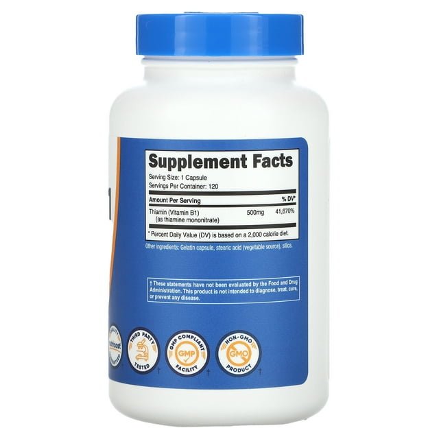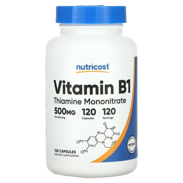 Nutricost Vitamin B1 (Thiamine) 500mg, 120 Capsules - Gluten Free & Non-GMO Supplement Nutricost Vitamin B1 (Thiamine) 500mg, 120 Capsules - Gluten Free & Non-GMO Supplement