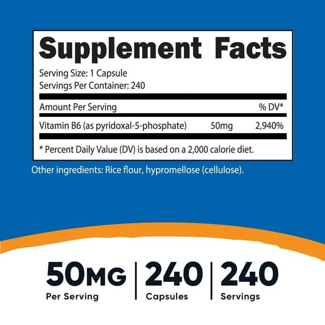 Nutricost P5P contains 50mg of Vitamin B6 (Pyridoxal-5-Phosphate) in every serving. Each bottle contains 240 vegetarian friendly capsules. This product is non-gmo, gluten free, and vegetarian friendly. Nutricost, located and headquartered in the USA, only uses the best ingredients to ensure maximum quality and to help you feel your best! By keeping our recipes simple and clean, you get the best experience possible with Nutricost. All Nutricost supplements are manufactured in a GMP-compliant and FDA-registered facility, provide high-quality ingredients, and offer a variety of options for your health support.
